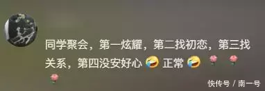 “同学聚会,第一炫耀,第二找初恋,第三找关系,第四没安好心。”