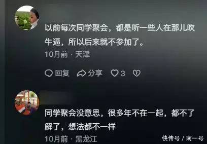 “以前每次同学聚会,都是听一些人在那吹牛,所以后来就不参加了。”