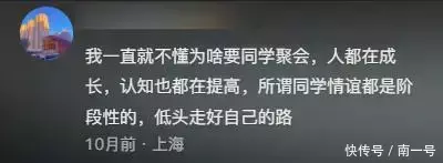 “一直不懂为啥要同学聚会,人都在成长,认知也都在提高,所谓同学情谊都是阶段性的,低头走好自己的路。”